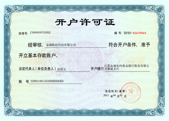 • 開戶許可證